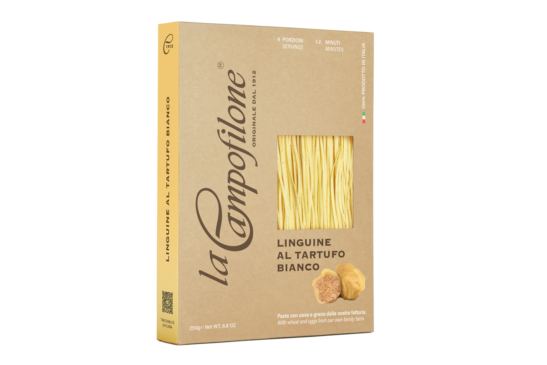 Тази паста съчетава традиция и гурме изтънченост, като позволява на фините нотки на бял трюфел да се разкрият напълно във всяко ястие.