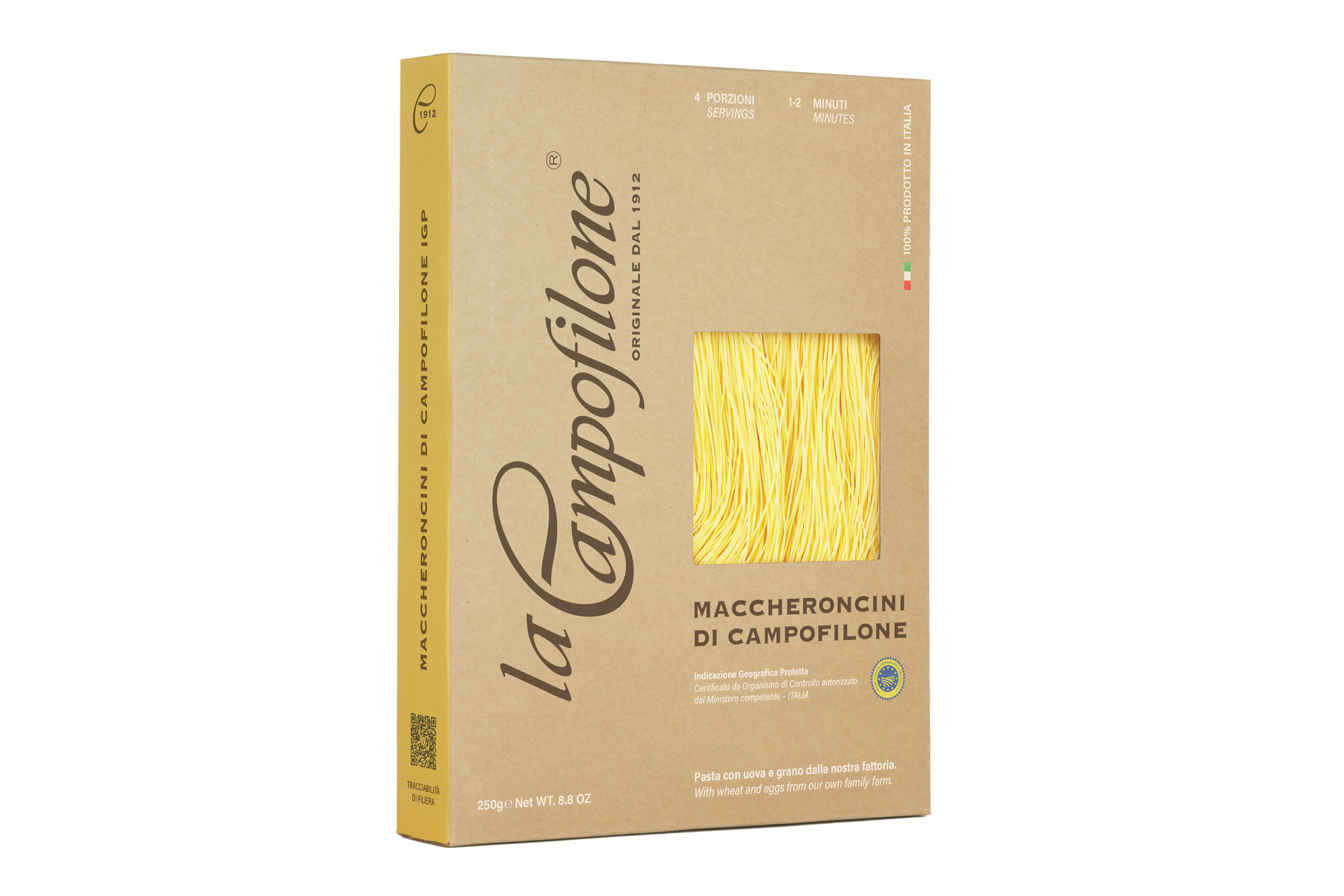 La Campofilone произвежда паста само с яйца и пшеница от собствената им ферма, без GMO или други подобрители.