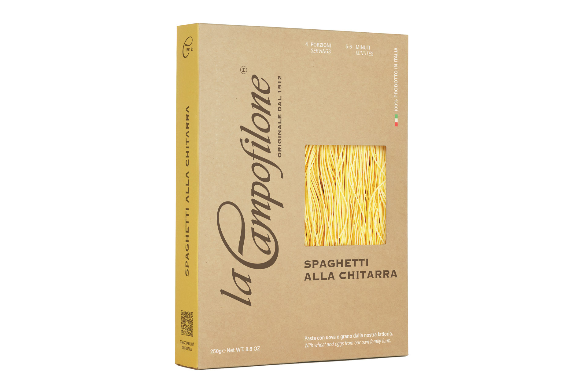 La Campofilone произвежда паста само с яйца и пшеница от собствената им ферма, без GMO или други подобрители.